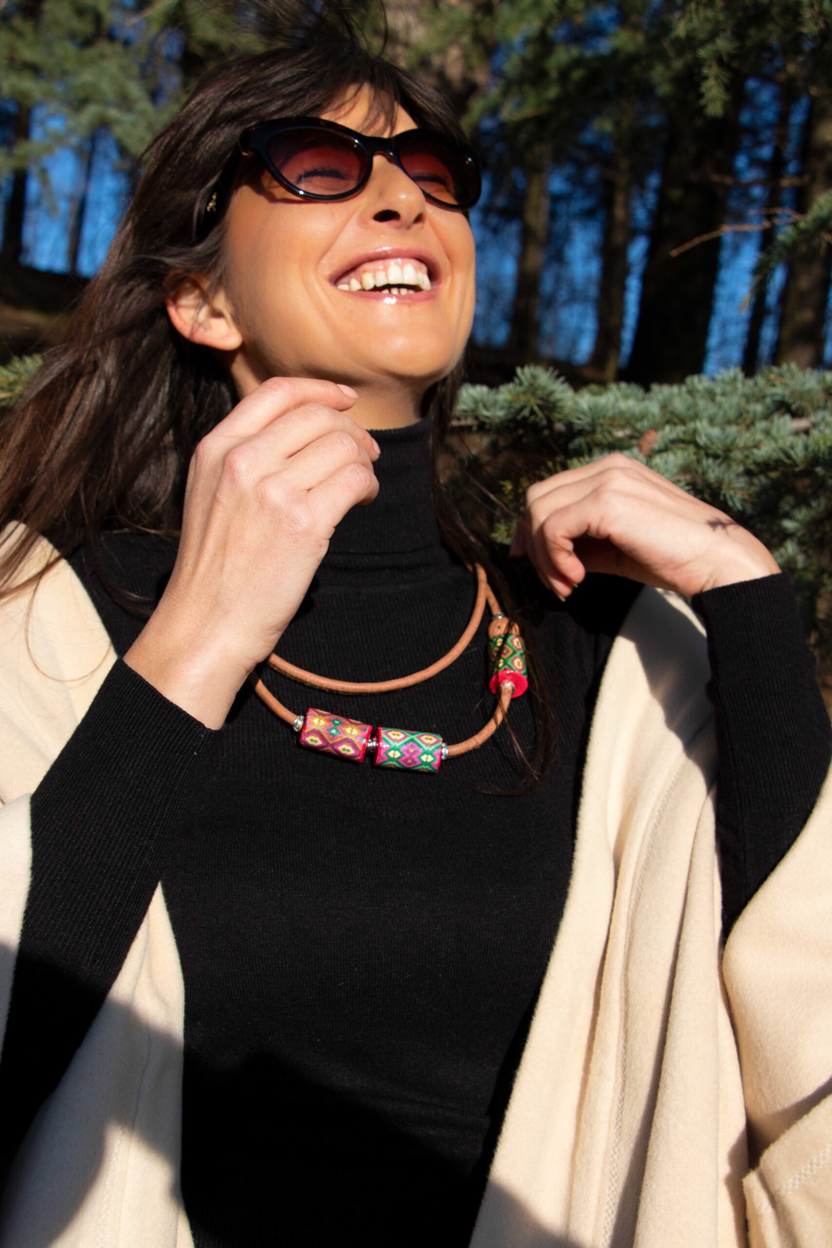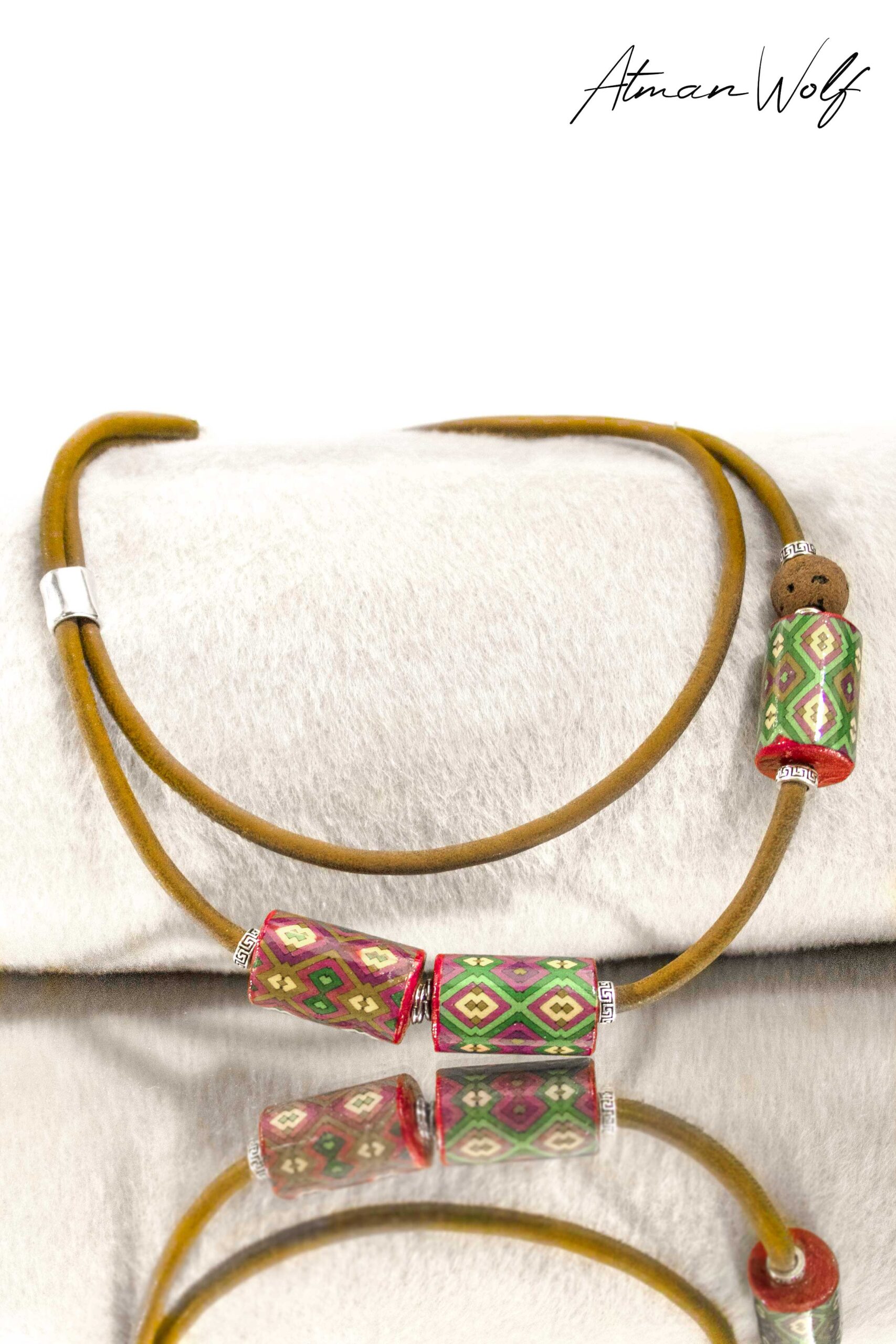The jewelry is handcrafted with great dedication to details and symbols as representatives of the energies and messages they carry. Each bead is made of wood, it is unique and unrepeatable.